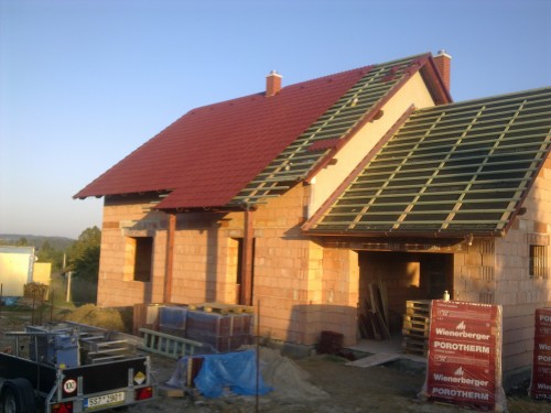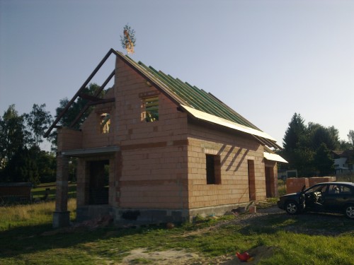 komíny už jsou také hotové a začala se laťovat garáž a arkýř do zahrady...