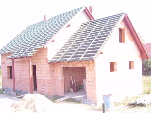 komíny už jsou také hotové a začala se laťovat garáž a arkýř do zahrady...