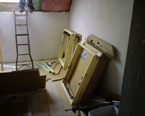 montáž pěti oken trvala celý den, okno nad schody se dělalo obtížně, protože je dost vysoko...